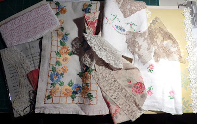 Creativity-wise, Nada, I'm afraid. I have been having a very muse-less time just lately and although I have tried to pick up various projects to work on, I have had to give up on them due to lack of enthusiasm and inspiration. However, I did stick at one project for a short while and did a little more work on my Spirit Cloth. To see how it started click